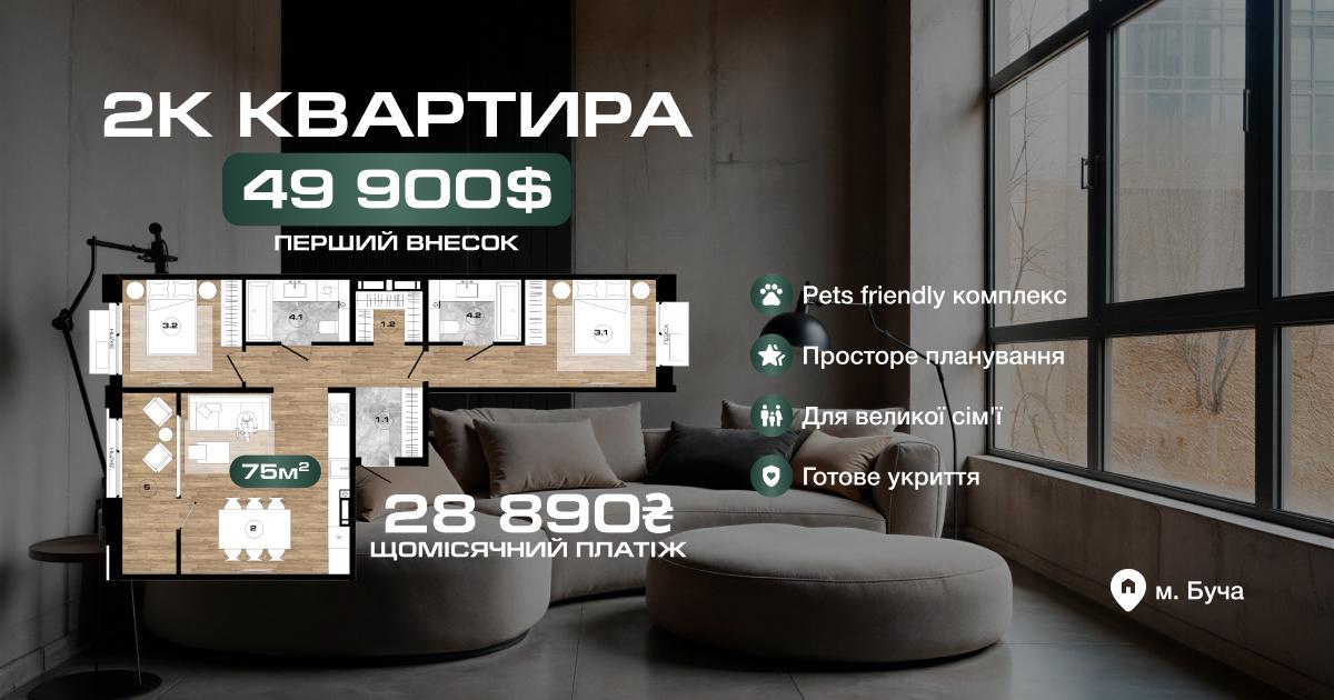 Перший внесок - 49 900 тис дол. Щомісячний платіж становить 28 890 тис грн.