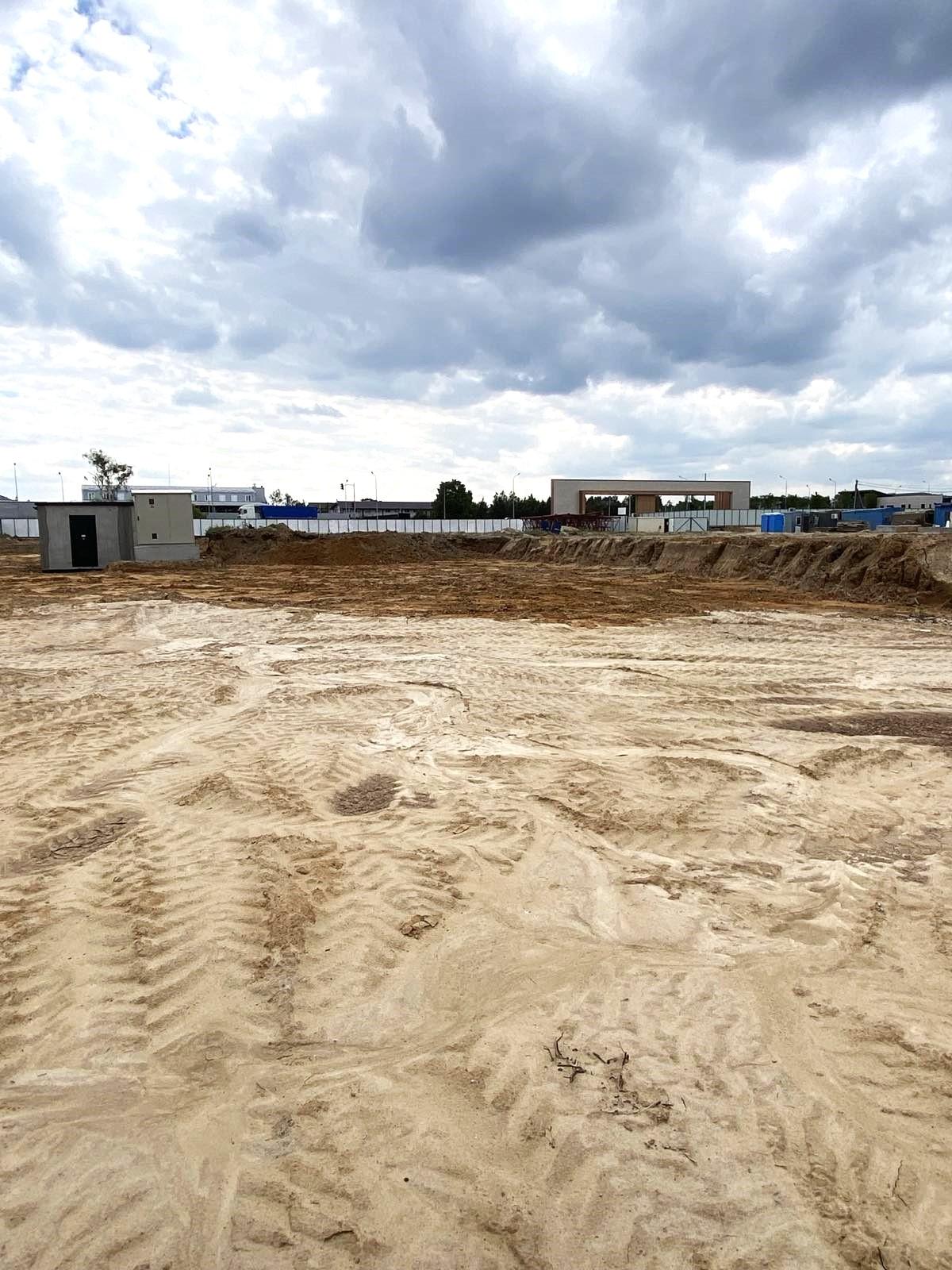 Окрім цього на будівельному майданчику активно ведуться роботи по вертикальному плануванню земельної ділянки 1-ї черги до проєктної відмітки, а також розпочато підготовку під прокладання зовнішніх інженерних мереж на ділянці.