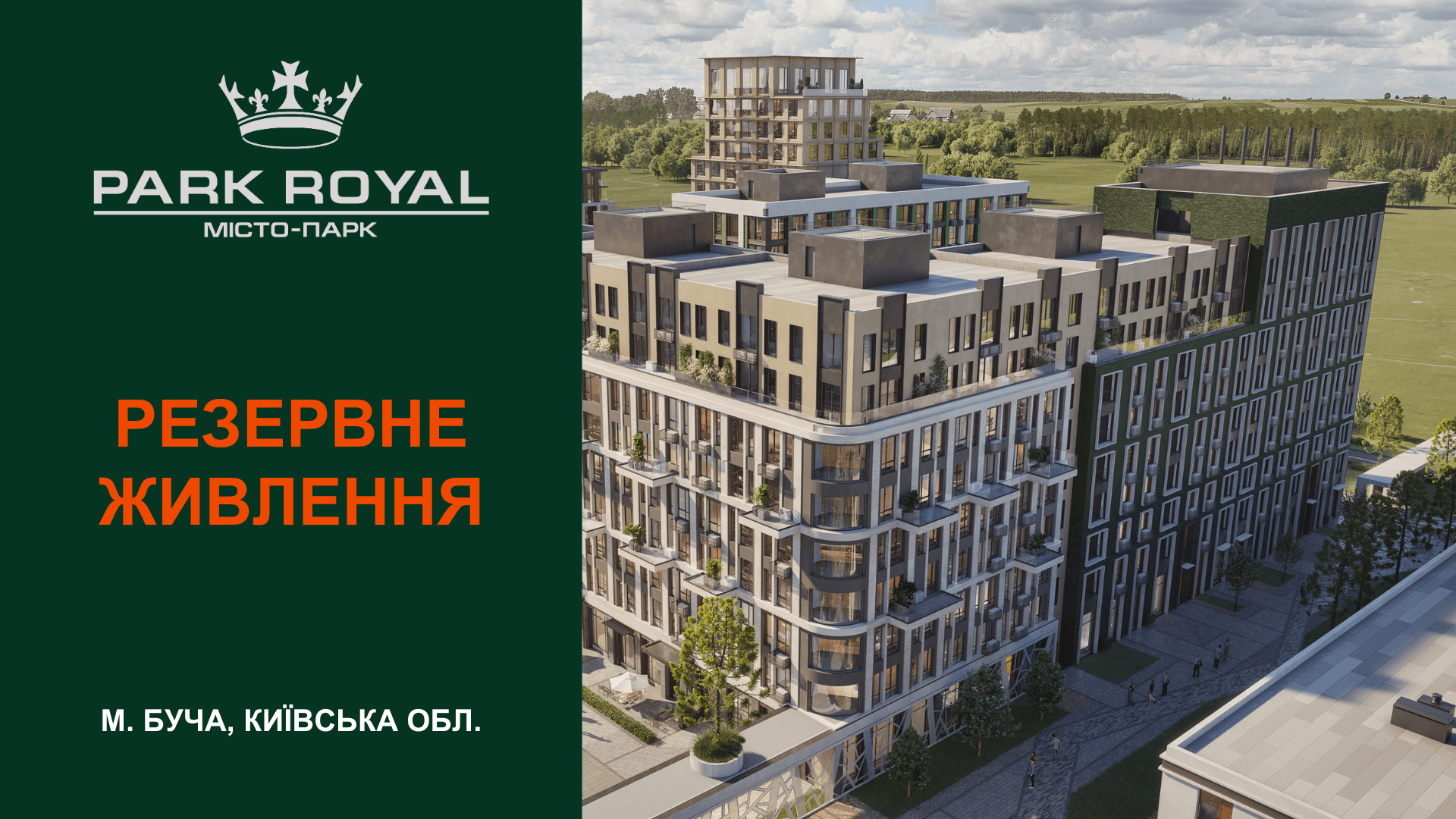 ЖК Park Royal є наймасштабнішим житловим комплексом у м. Буча. Його площа складає 25 Га, власна екологічно-чиста зона — 4 Га. На території місто-парка буде збудовано школу і дитячий садок на 600 учнів. А також дитячий простір Kid’s Word площею майже 6000 кв.м. У ЖК збудують центральну площу з власною оранжереєю та амфітеатром. Для інвесторів розроблено понад 50 типів планувань. Гордістю PARK ROYAL є його візія — простір, у центрі якого знаходиться людина в єднанні з природою"