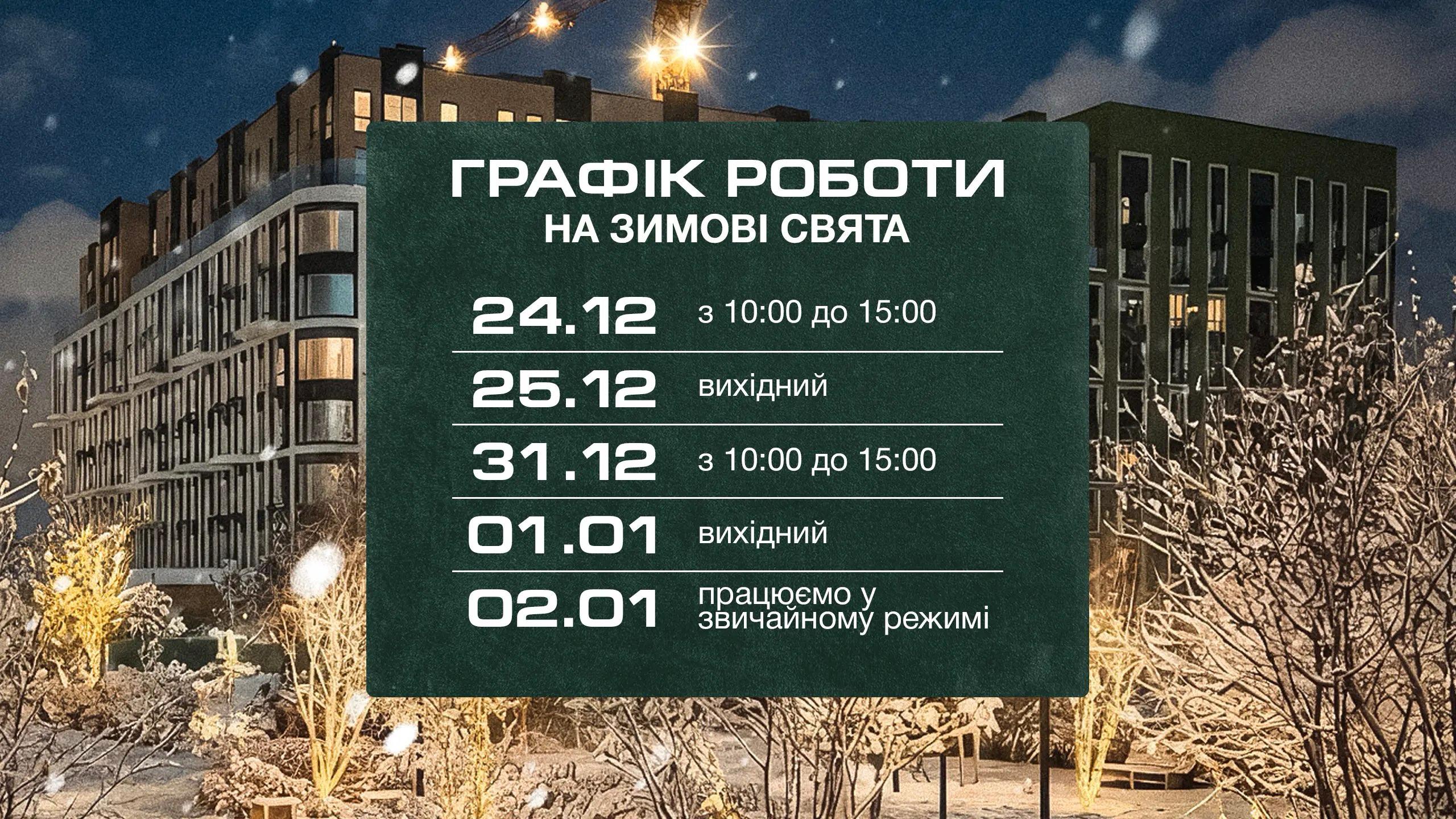 24.12 та 31.12 — офіс працює з 10:00-15:00;